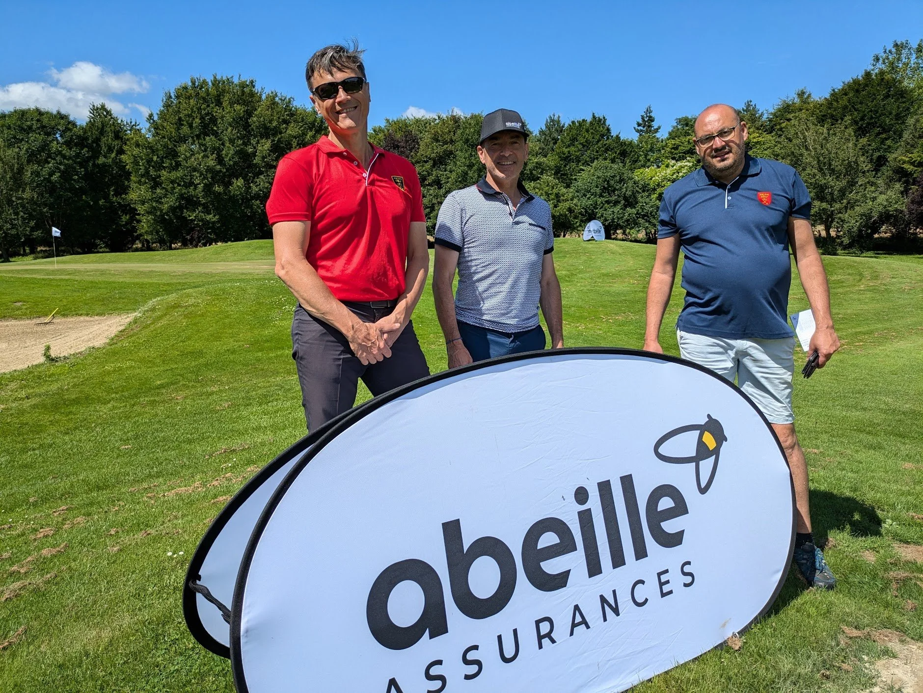 Nous remercions nos sponsors Abeille Assurances et plus particulièrement Didier Juin et Philippe Avril, agents courtiers d’Abeille a Château Gontier et à Fredéric Lagadec, délégué régional pour nous avoir accordé leur confiance en 2024 (nous faisons partie des 29 clubs choisis pour le tournoi national). Merci également à Gaultier Lauriau, Directeur de Patrimoine d’Abeille Assurances et il y a 30 ans, membre d’Anjou Golf pour sa présence ! Que nos arbres ont poussés !